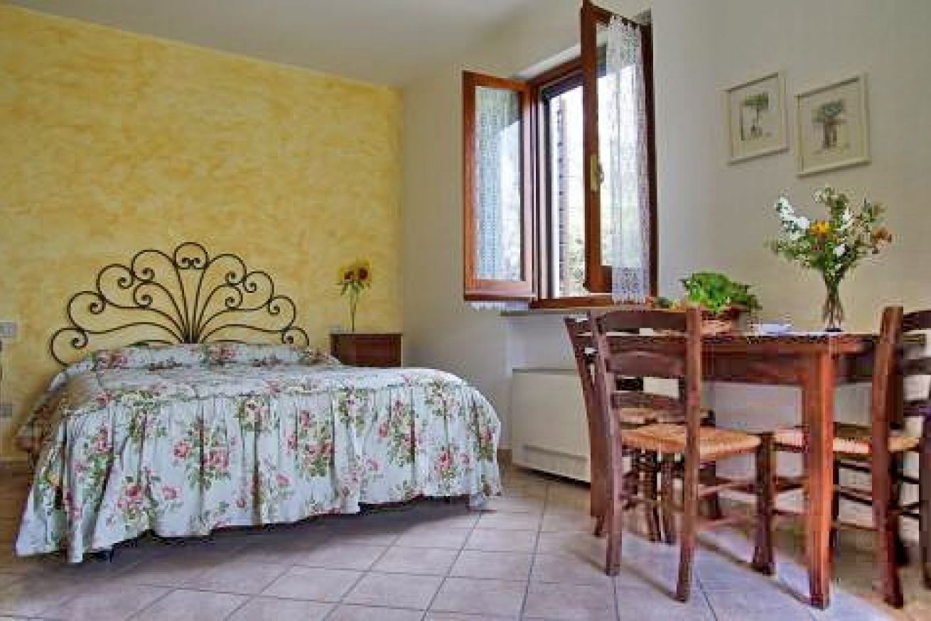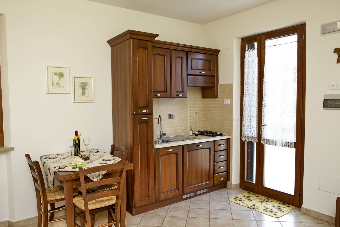 Monolocale con letto matrimoniale e letto a castello, angolo cottura, tavolo da pranzo. Aria condizionata. Occupazione massima 2 adulti + 2 bambini.